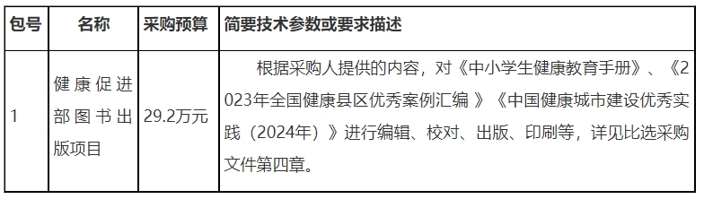 中国健康教育中心 “健康促进部图书出版项目进行比选采购,现邀请合格供应商参加比选响应。
