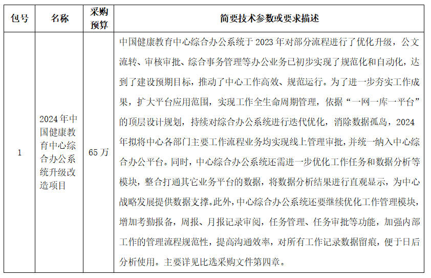2024年中国健康教育中心综合办公系统升级改造项目比选公告