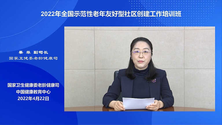 为进一步推进全国示范性老年友好型社区创建工作,2022年4月22日,2022年全国示范性老年友好型社区创建工作培训班以线上直播形式举办,中国健康教育中心作为全国示范性老年友好型社区创建工作办公室,承办了本次培训班。全国各省级、地市级、部分县区级及社区负责创建工作的人员、专家近6000人参加了本次培训。国家卫生健康委老龄司副司长蔡菲、中国健康教育中心纪委书记胡洪波出席培训班并做开班动员。