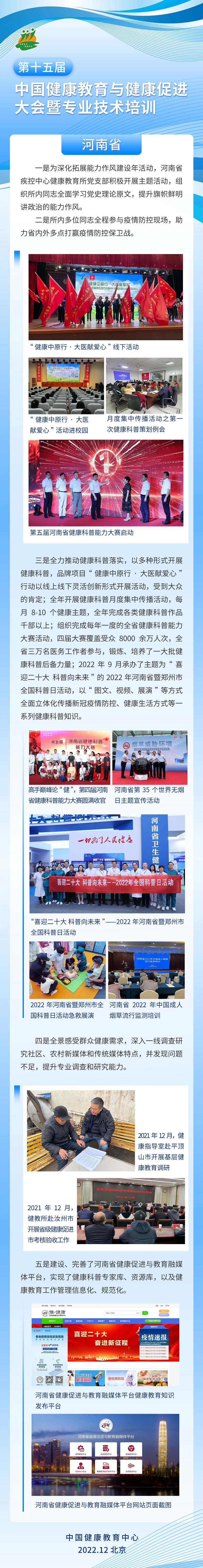2022年,全国各地积极开展健康教育、健康促进和卫生健康新闻宣传工作,涌现出很多亮点、特色和经验。值此第十五届中国健康教育与健康促进大会暨专业技术培训举办之际,中国健康教育中心组织各省级健康教育机构对2022年重点工作进行了梳理,旨在交流分享,不断推动健康教育工作高质量发展。