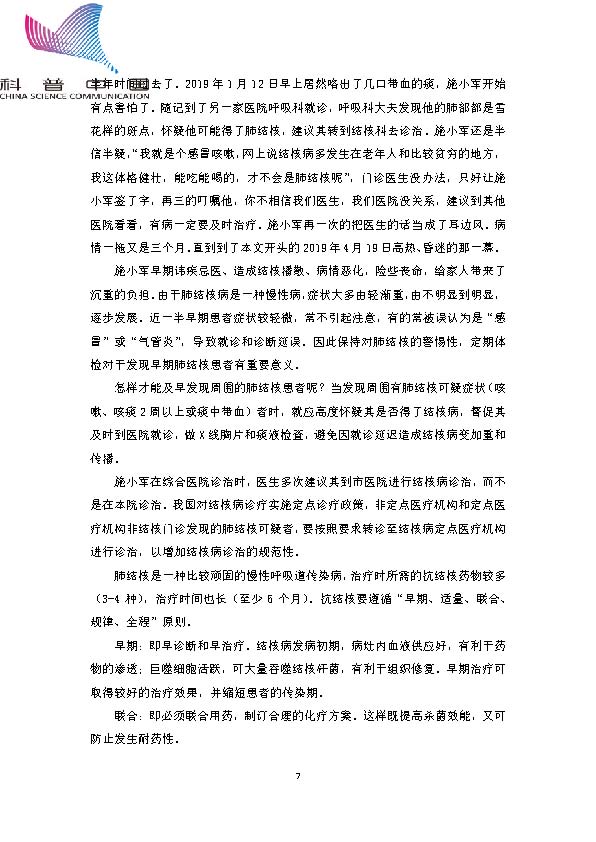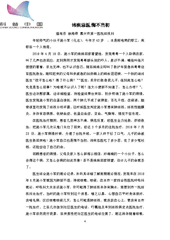 身边的结核病故事——讳疾忌医,悔不当初