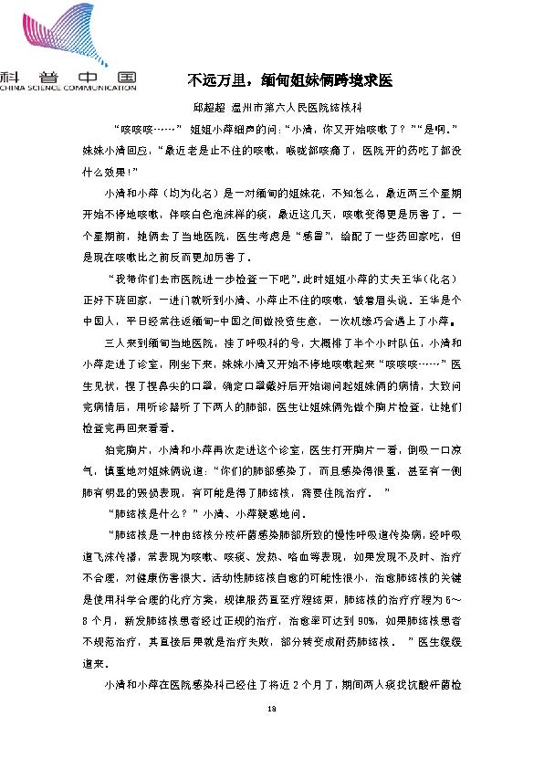 身边的结核病故事——不远万里,缅甸姐妹俩跨境求医