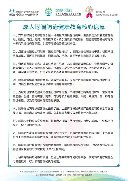 成人哮喘核心信息展板