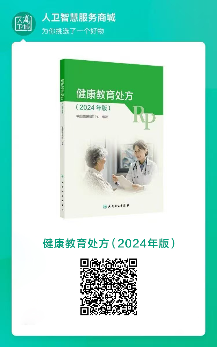 健康教育处方为医务人员开展个体化健康教育、精准健康教育服务提供了专业、规范、易行的工具,是医务人员指导患者进行自我健康管理的一种有效的非药物治疗手段。中国健康教育中心组织开发了73种重点疾病健康教育处方,编著出版《健康教育处方(2024年版)》。