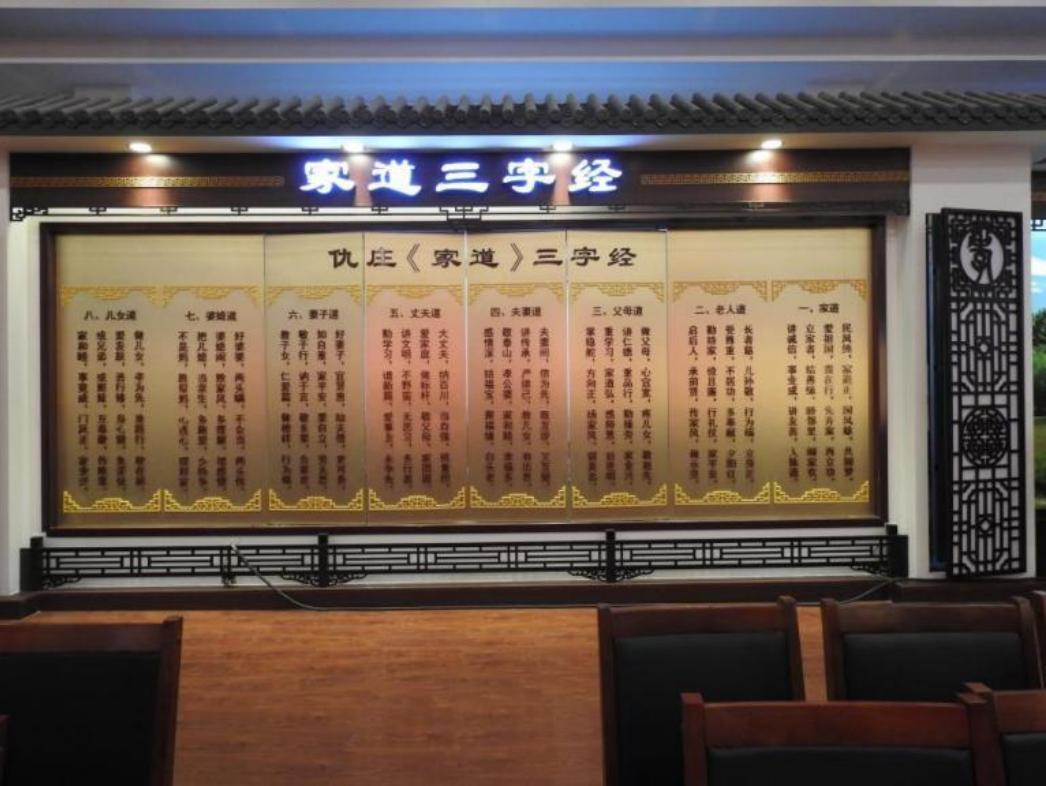 2014年,仇庄村率先启动了“追寻家训家规,呼唤良好家风”主题教育活动,专门成立了孝文化专家组,邀请中华儒学会理事等传统文化大师,以召开家庭会议形式,为193户家庭提炼制作了家风、家训、家规,让家家户户过日子都有章可循、有规可守。同时,为形成一个全村共同的治家标准,仇庄村还与专家组成员多次召开座谈会,研究并首创了仇庄家道三字经。如今,仇庄每个家庭都在客厅悬挂着各家的“家风”和“家道”两块牌匾,全体村民都找到了立家之本与齐家之道。